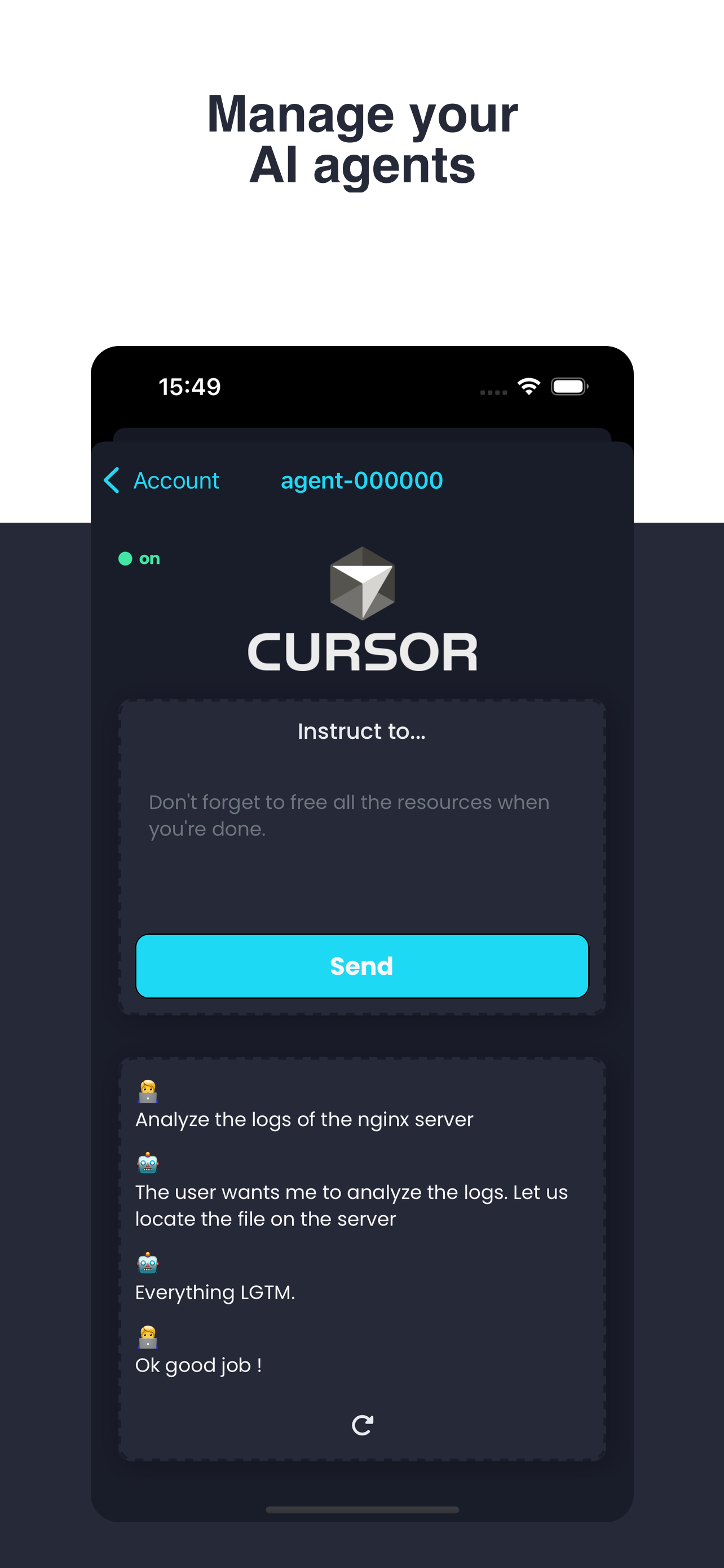 A Cursor agent is an autonomous AI process that performs actions directly on your repository (e.g. fix bugs, develop new features, etc.).